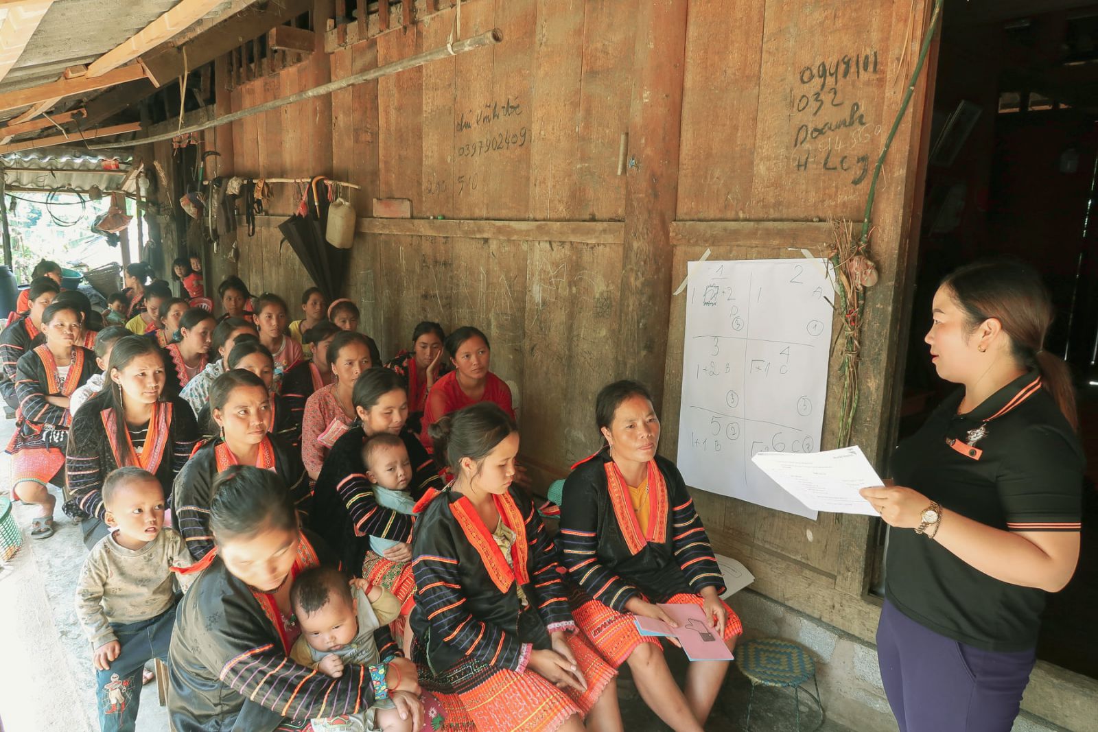 Những buổi họp của Câu lạc bộ Phụ nữ dần khiến Thanh thấy gắn bó và tôn trọng bởi các chị em trong cộng đồng hơn. Nhờ vậy, Thanh cũng cởi mở để chia sẻ câu chuyện của mình để giúp các chị em khác phòng tránh các thủ đoạn của những kẻ buôn người (Ảnh minh hoạ 01 buổi sinh hoạt Câu lạc bộ Phụ nữ).
