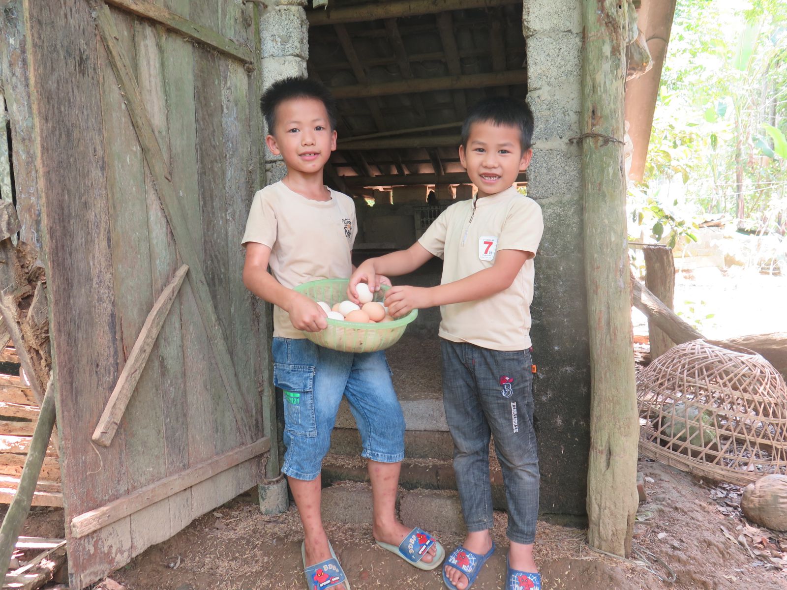 Indeed, since Hoàng started rearing ducks, his family meals were getting heartier and more nutritious, directly resulting in his two growing boys. “I like eating eggs, drumsticks, and goose meat. Oh, and sweet braised pork. Whenever my parents sell pigs, I’m thrilled because they will get me new clothes and school supplies,” Hướng, eight years old, and Thành, six years old, smiled shyly.