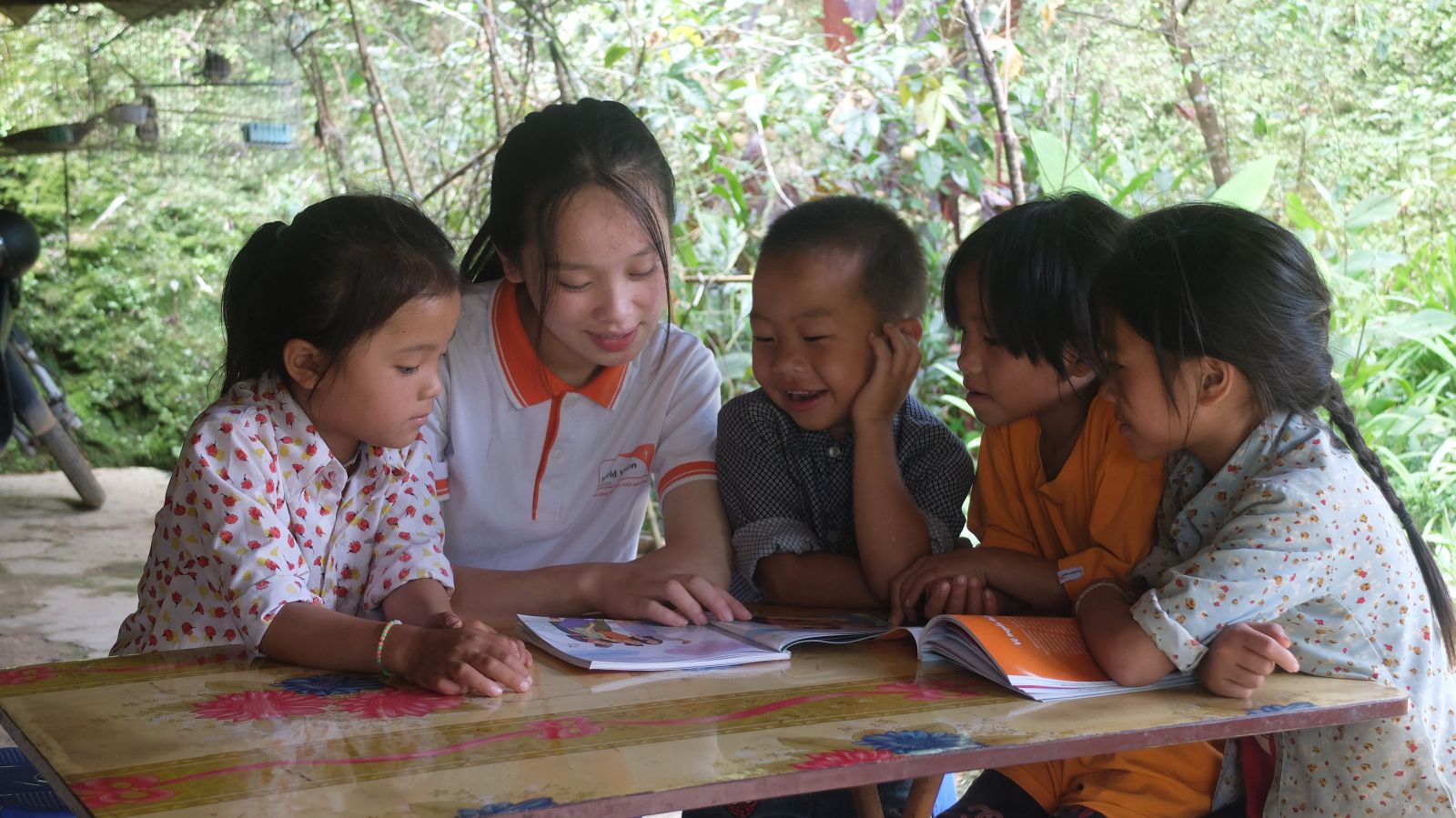 After finishing her chores, Thảo loves gathering up the neighbor kids and reading to them